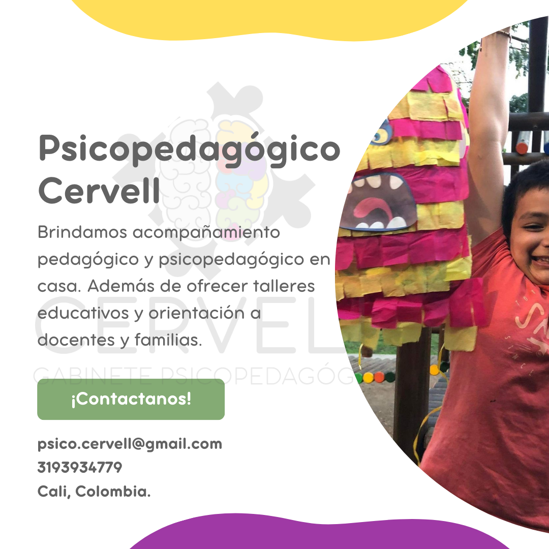 ¡Hola! Si estás buscando un acompañamiento pedagógico y psicopedagógico en casa, ¡Cervell es la opción perfecta para ti! Ofrecemos una amplia gama de servicios educativos, como talleres de vacaciones, apoyo escolar, estimulación temprana y talleres a docentes en primera infancia, con un enfoque en el juego como herramienta de aprendizaje.